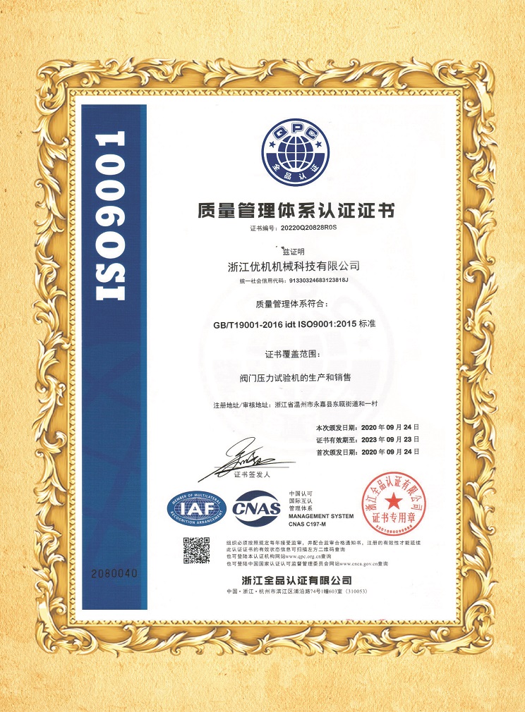 ISO9001質(zhì)量管理體系認(rèn)證證書