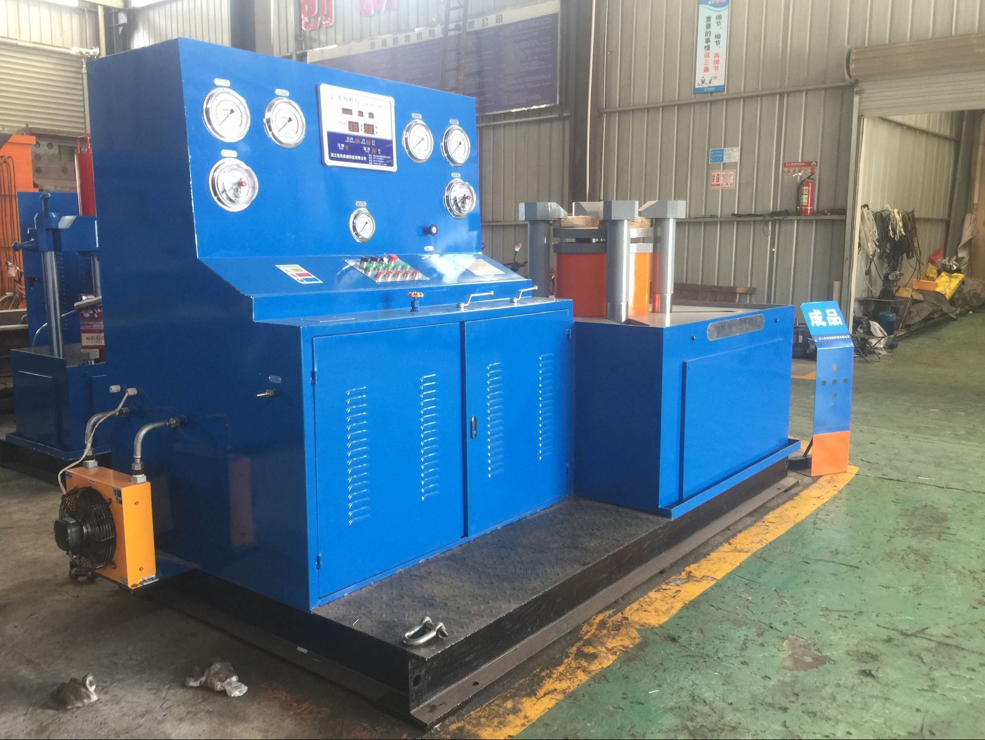 三、接通電源,按油泵啟動按鈕,檢查電機轉動方向,是否正確(順時針方向)進行5 — 10分鐘空載運轉后,調(diào)節(jié)油泵壓力在5 0MPa進行試機,各種動作,檢查各管路有無泄漏,發(fā)現(xiàn)不良現(xiàn)象,應立即停機排除。