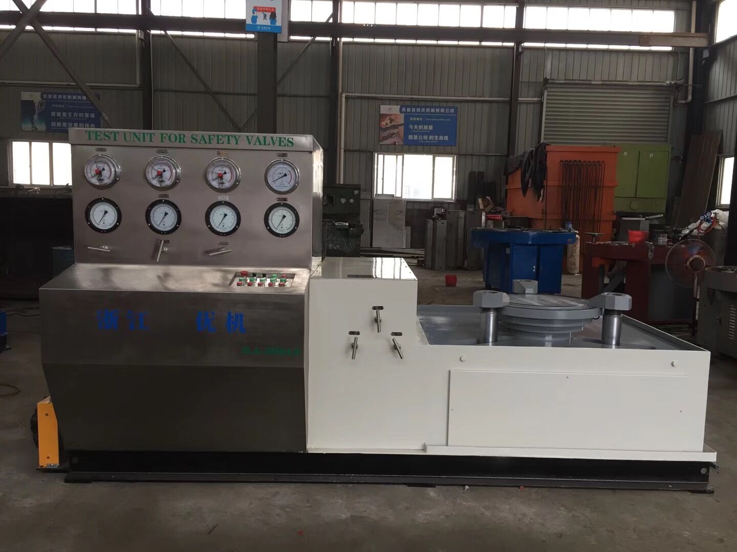 此次中標(biāo)的產(chǎn)品是國家專利產(chǎn)品,公司擁有自主知識產(chǎn)權(quán),專利號:ZL 2013 2 0894666.7,型號:JLA-Z-600精度智能安全閥測試機(jī),該試驗(yàn)設(shè)備精度可達(dá)到0.25%,分辨率0.01Mpa,過水部件和控制柜選用不銹鋼管路和高壓開關(guān)閥門,主要針對石化冶煉高要求大口徑安全閥。JLA-Z600試驗(yàn)機(jī)具有結(jié)構(gòu)簡潔、功能齊全、精度高、操作易懂等特點(diǎn),主要測試檢驗(yàn)安全閥起跳/整定/強(qiáng)度等性能參數(shù)檢測。是目前國內(nèi)技術(shù)領(lǐng)先的智能安全閥試驗(yàn)檢測設(shè)備,是浙江優(yōu)機(jī)機(jī)械公司自主研發(fā)的新一代大口徑安全閥檢測設(shè)備,該產(chǎn)品先后中標(biāo)大慶油田建設(shè)工程公司、中海油大亞灣閥門檢測中心,產(chǎn)品憑借高精度、智能、節(jié)能、操作方便等特點(diǎn)是石油化工和金屬冶煉企業(yè)的首選產(chǎn)品。